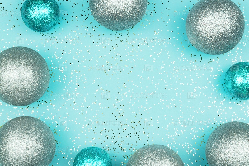 Рамка с рождественскими голубыми и серебряными безделушками. Праздничная открытка на новый год
