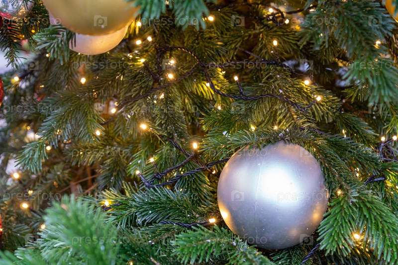 Закройте украшение елки безделушками и светящейся гирляндой. Праздничная открытка к зимним праздникам