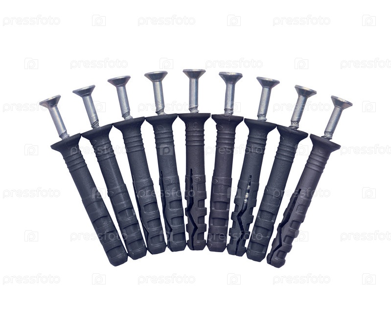Винты и дюбели, изолированные на белом фоне крупным планом