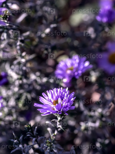 Свежие осенние фиолетовые цветы в саду