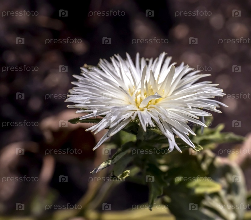 Свежая нежная белая хризантема в саду