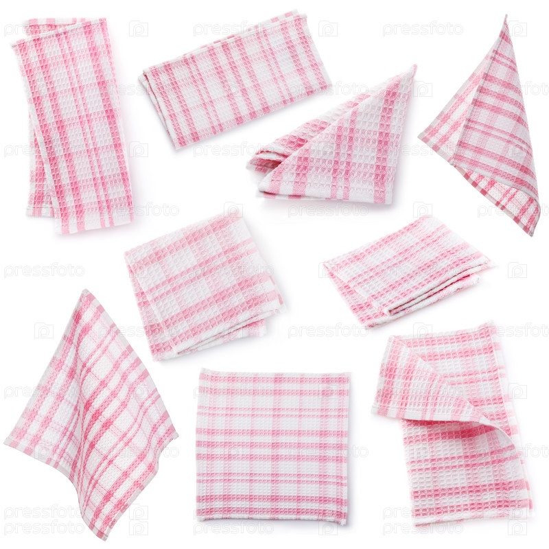Набор различных салфеток розового цвета, выделенных на белом фоне