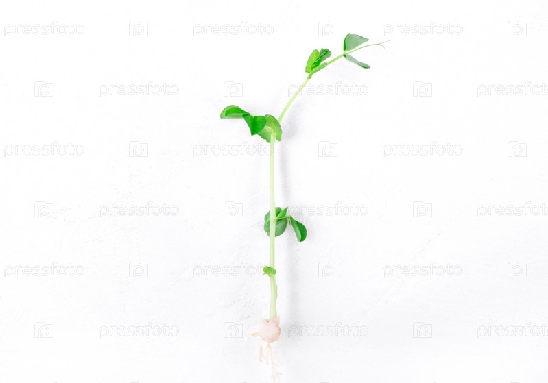 Росток зеленого горошка на белом столе