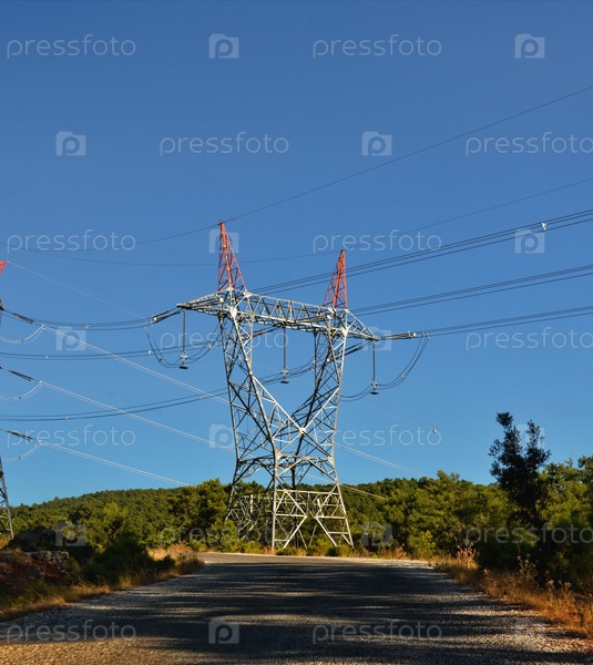 Высоковольтные линии электропередач, проходящие через вспаханное поле, на фоне красивого облачного неба