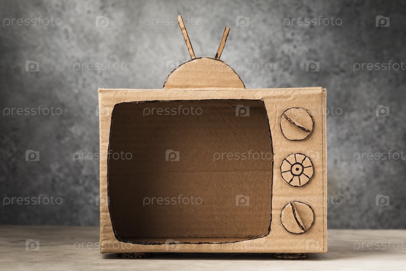 Пустой картонный телевизор на абстрактном фоне, шаблон для дизайнера