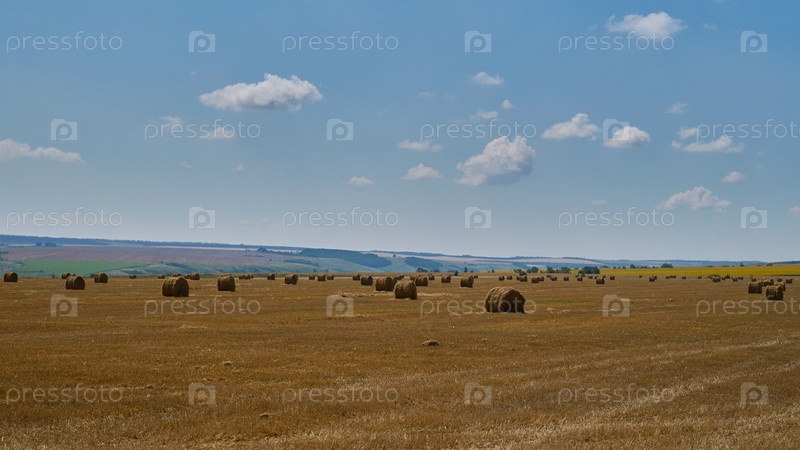 Летний пейзаж поля, равнина урожай