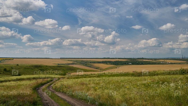 Летний пейзаж поля, равнина урожай