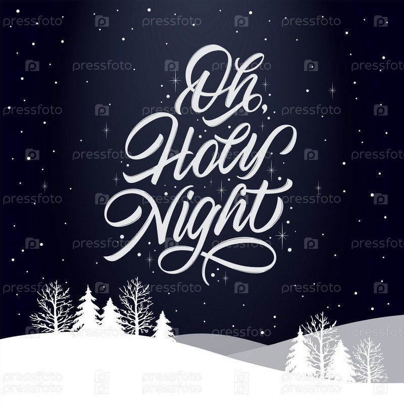 О, векторный текст Святой ночи к празднику Рождества. Дизайн плаката, поздравительной открытки, приглашения на вечеринку. Векторная иллюстрация