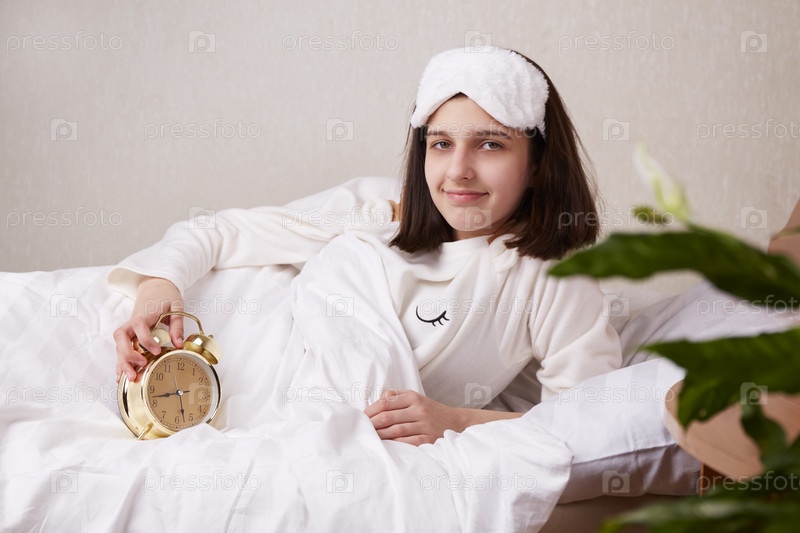 Девочка-подросток сидит в постели под одеялом