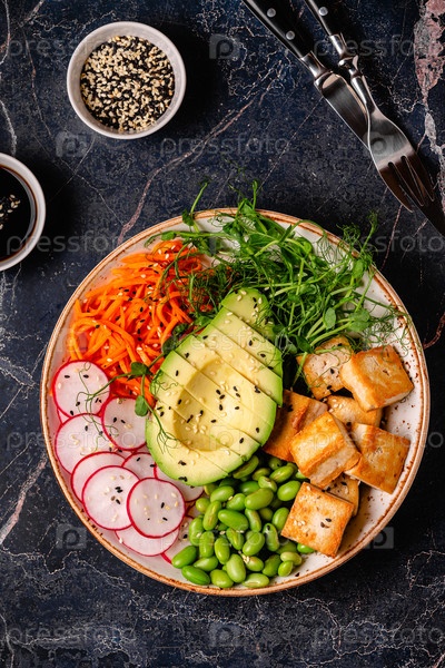 Азиатский салат в чаше Будды с сыром тофу