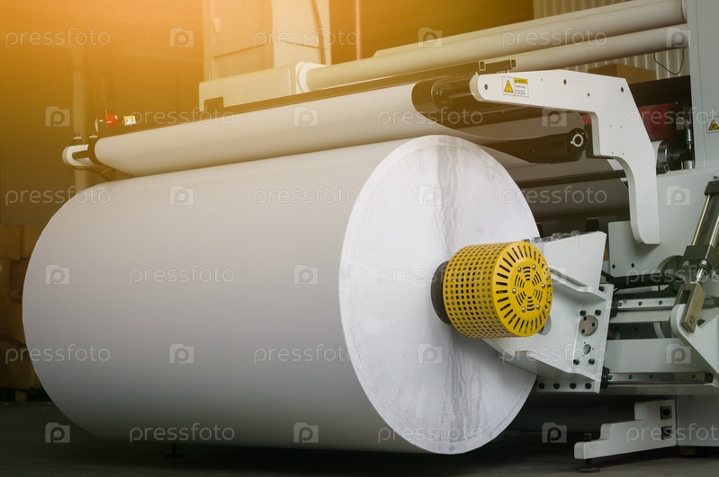 Современная машина для резки больших рулонов белой бумаги для типографий с рулонными высокоскоростными печатными машинами. Выборочный фокус