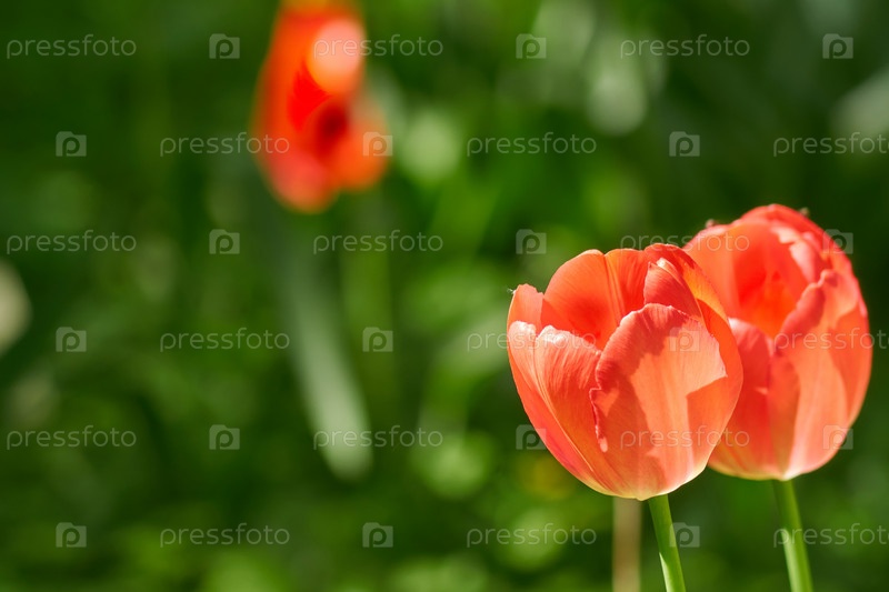 Мягкое изображение красивого красного тюльпана на зеленом фоне боке