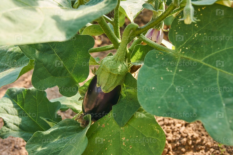Баклажаны в огороде. Свежий органический баклажан