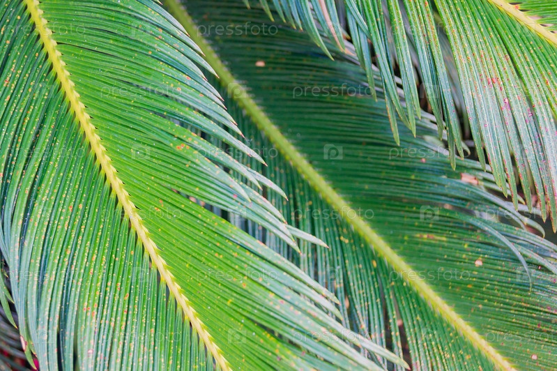 Зеленые листья кокосовой пальмы. Естественный летний фон