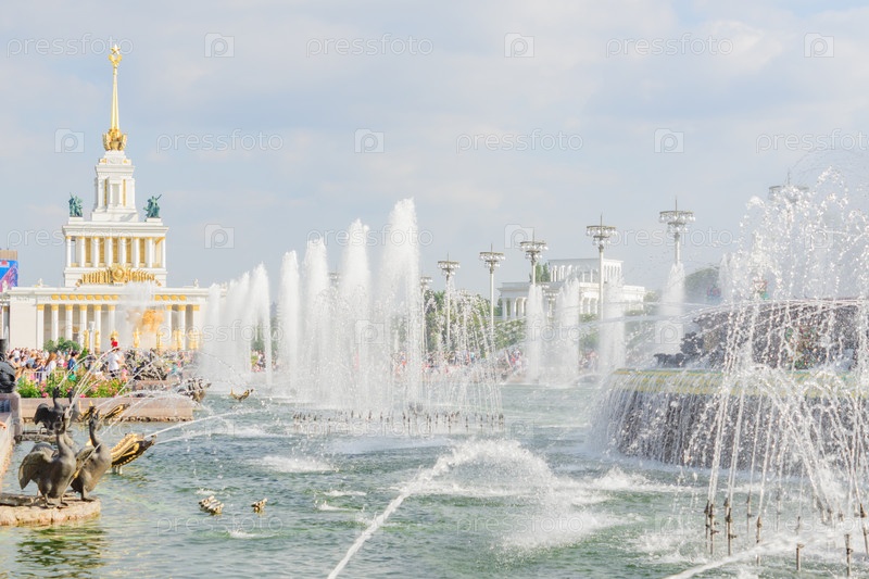 МОСКВА, РОССИЯ - 18 августа 2019 г.: Фонтан "Каменный цветок". Архитектура парка ВДНХ
