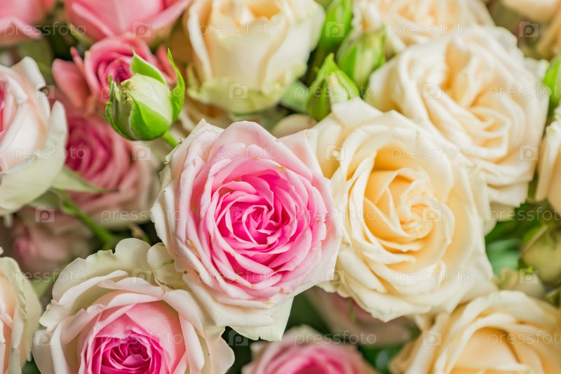 Крупным планом букет цветущих роз. пастельные тона