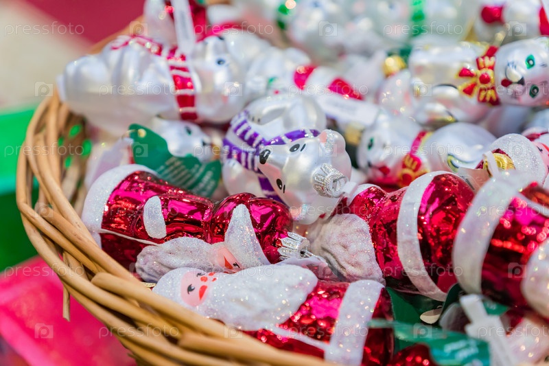 Рождественские игрушки на ярмарке. Праздничные покупки