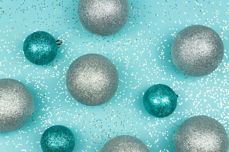 Рамка с рождественскими голубыми и серебряными безделушками. Праздничная открытка на новый год