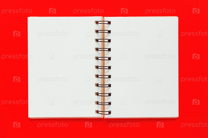 Чистая спиральная записная книжка для заметок и сообщений на красном фоне. Минимальная деловая планировка