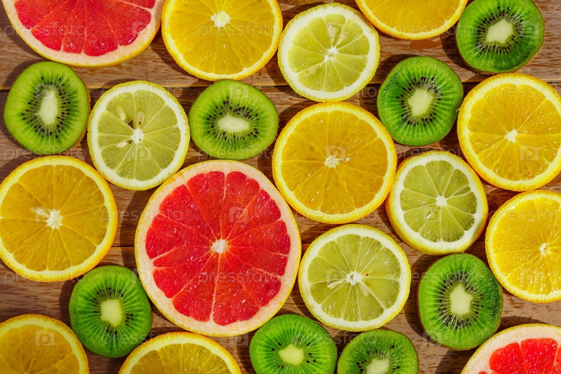 Рамка с ломтиком апельсинов, лимонов, киви, грейпфрутовый узор на белом фоне