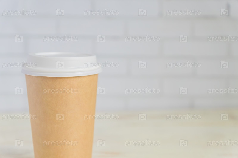 Кофейная чашка из крафт-бумаги.Coff идти на сером фоне