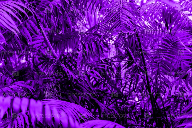 Ультрафиолетовый фон со свежими тропическими листьями. фон для вашего дизайна