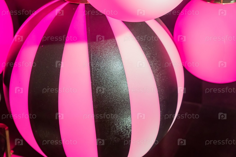 Много розовых фонариков в форме шара. Оформление вечеринки
