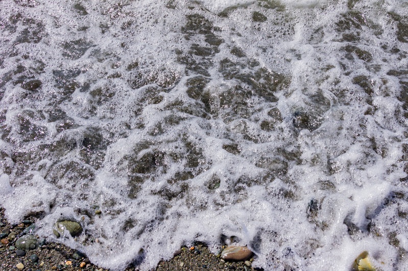 Морская волна на галечном побережье. Естественный фон. Брызги воды