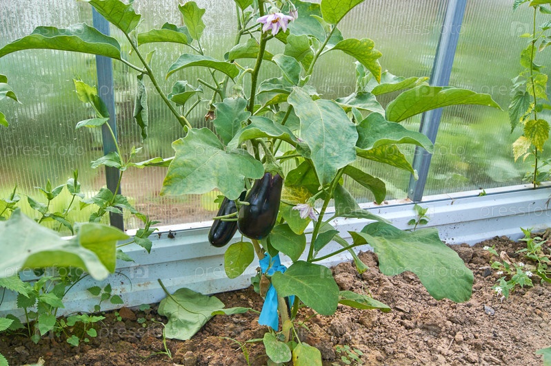 Баклажаны в огороде. Свежий органический баклажан