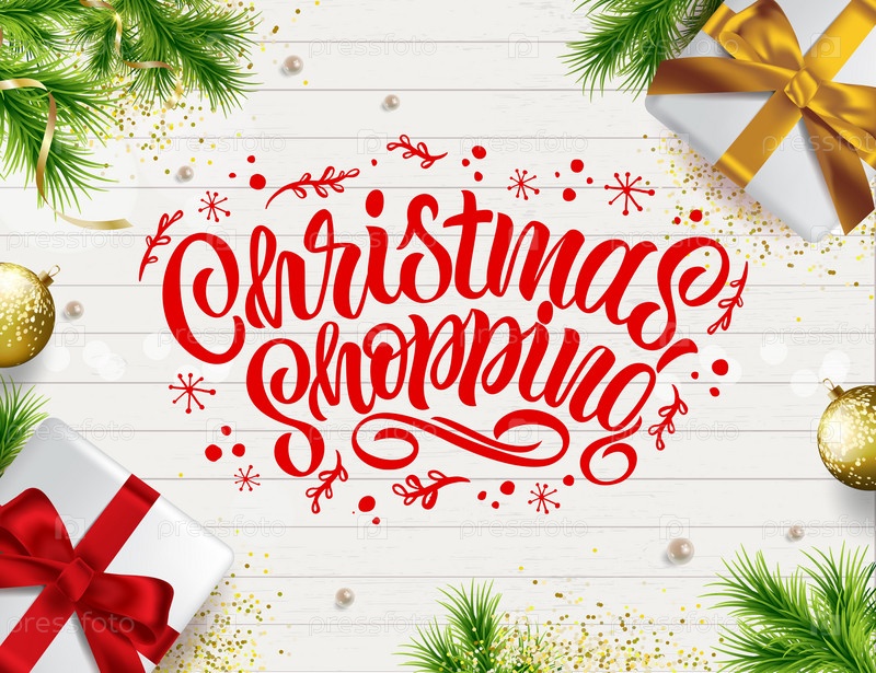 Дизайн вектора типографии рождественских покупок для поздравительных открыток и плакатов. Рождественские покупки ручной надписи на размытом фоне. Празднование шаблона дизайна. Векторная иллюстрация