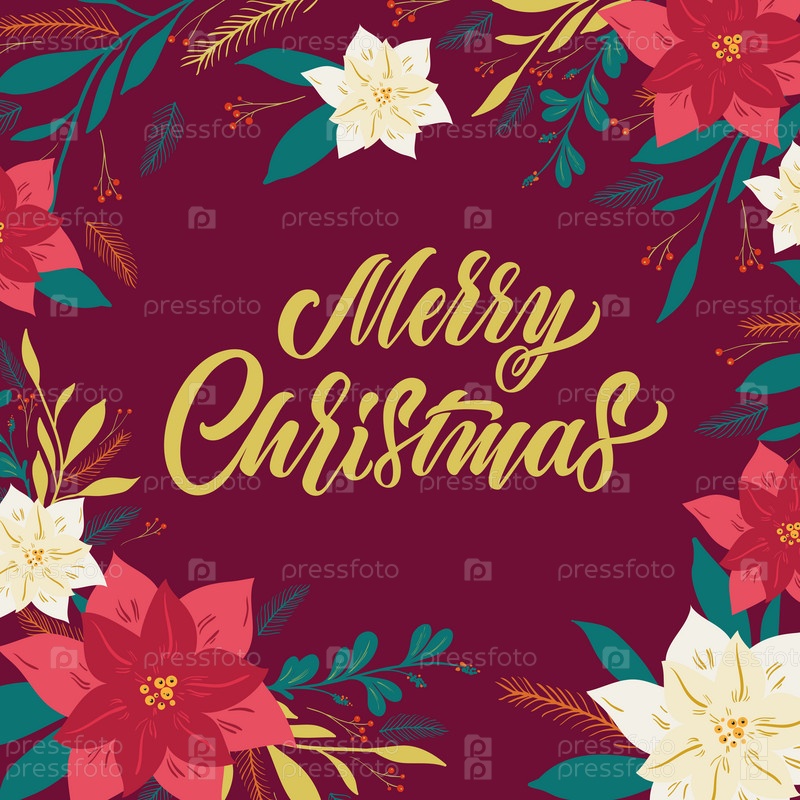 С Рождеством Христовым векторный текст Шаблон карты каллиграфического дизайна. Каллиграфические надписи ручной работы
