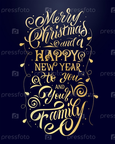 Счастливого Рождества и счастливого Нового года вам и вашей семье векторный текст. Шаблон карты каллиграфического письма. Каллиграфические надписи ручной работы