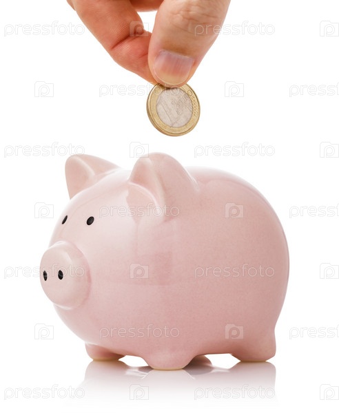 Рука кладет один евро в копилку. Концепция на тему экономии