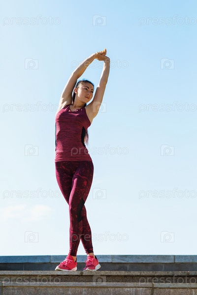 Молодая женщина выполняет упражнения солнечным летним утром на открытом воздухе