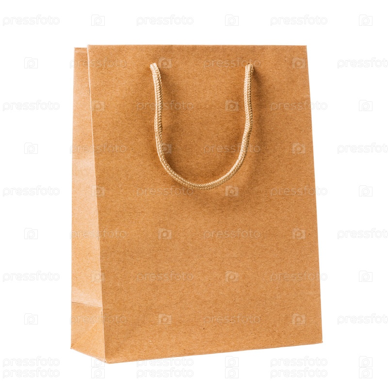 Пустой бумажный пакет на белом фоне