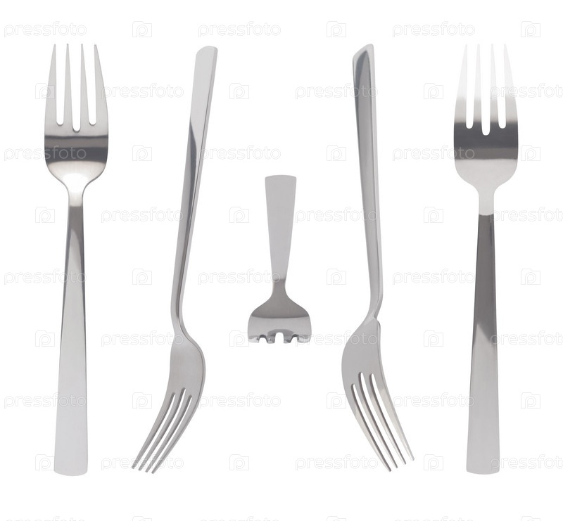 Набор видов сверху, сбоку и сзади вилки на белом фоне