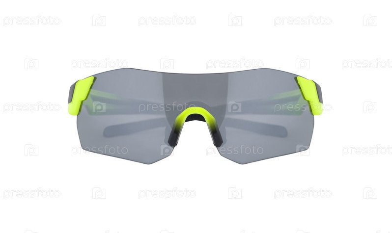 Вид сверху на спортивные солнцезащитные очки с серыми линзами на белом фоне