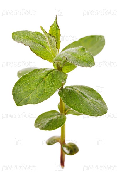 Маленькая ветвь мяты перечной мяты изолирована на белом фоне