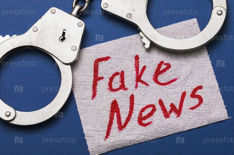 Наручники и лист туалетной бумаги с надписью. Концепция наказания за фейковые новости