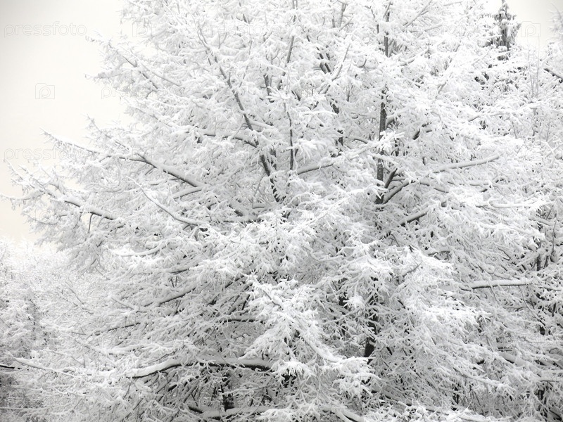 Деревья и кустарники зимой покрыты пушистым снегом как в сказке
