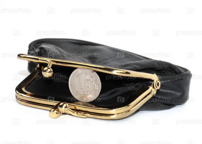 Металлический российский рубль в старом пенсионерском кошельке бедного пенсионера