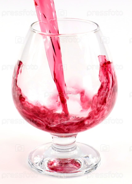 Поток красного вина при наливании в бокал