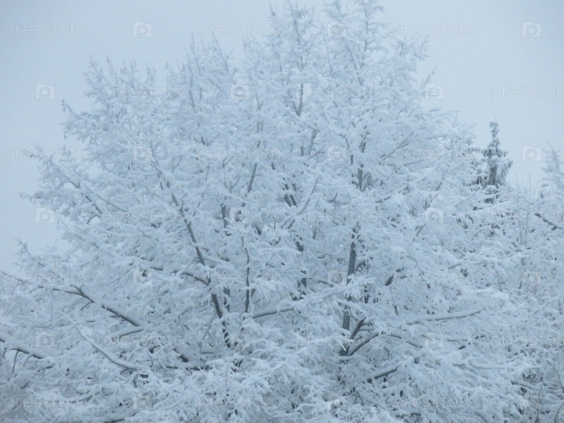 Деревья и кустарники зимой покрыты пушистым снегом как в сказке