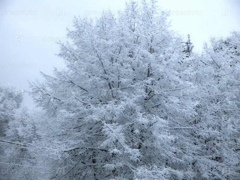 Деревья и кустарники зимой покрыты пушистым снегом как в сказке