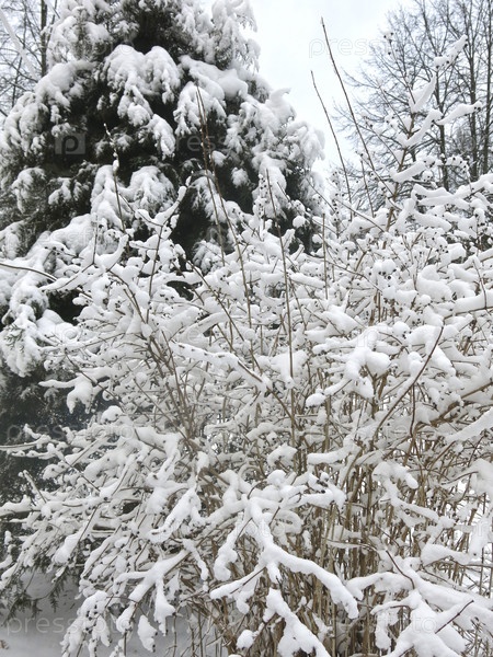 Деревья и кустарники зимой покрыты пушистым снегом как в сказке