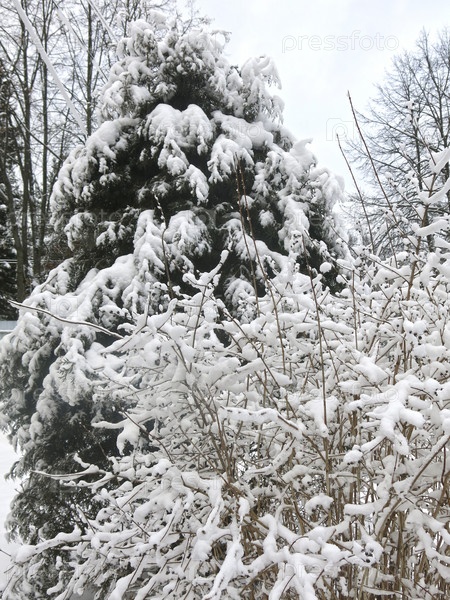 Деревья и кустарники зимой покрыты пушистым снегом как в сказке