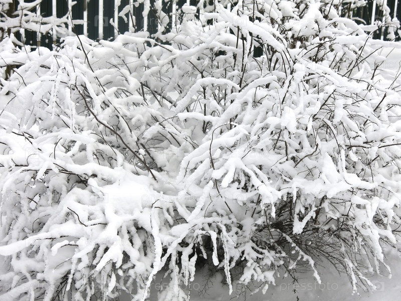 Деревья и кустарники зимой покрыты пушистым снегом как в сказке