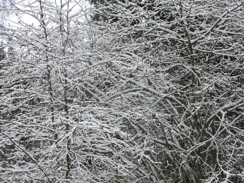 Деревья и кустарники зимой покрыты пушистым снегом как в сказке
