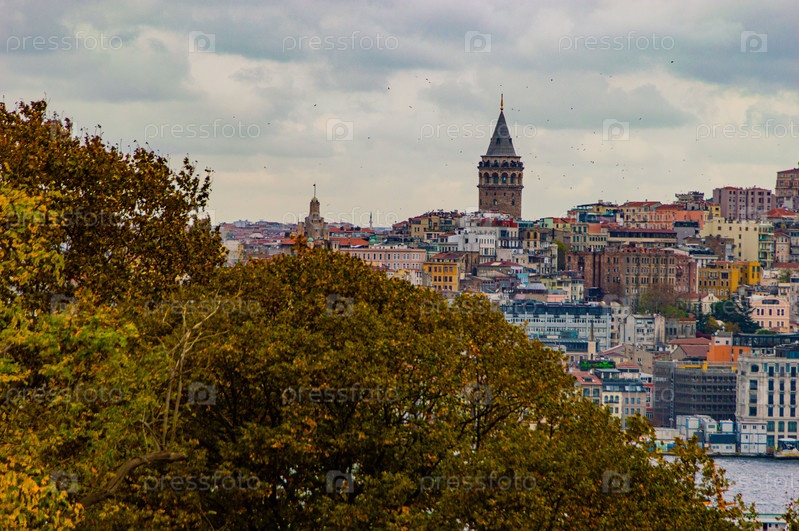 Панорама Галатской башни, Стамбул, Турция осенью