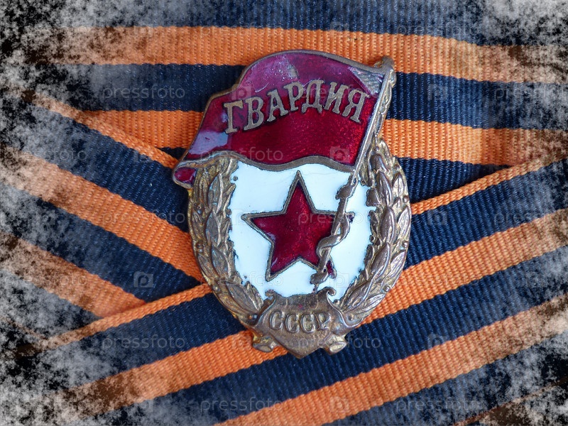 Знак "Гвардия" на георгиевской ленточке. Крупный план.9 мая - День Победы